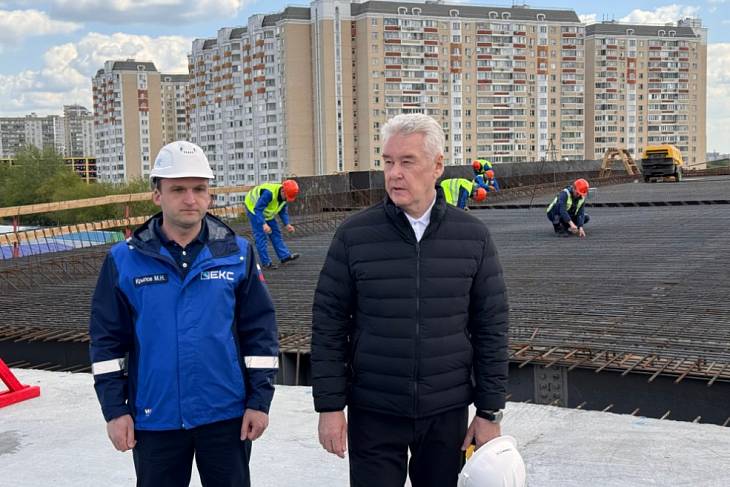 Сергей Собянин осмотрел строящийся путепровод через железнодорожные пути (Медведковскую грузовую ветку) в районе Бибирево на северо-востоке Москвы.