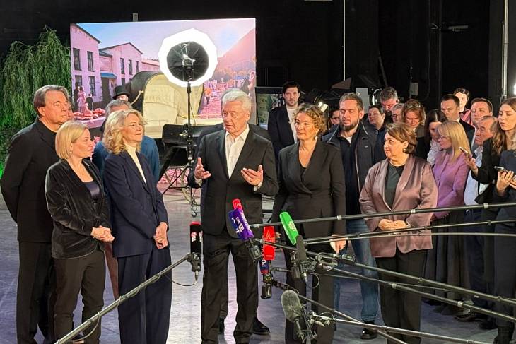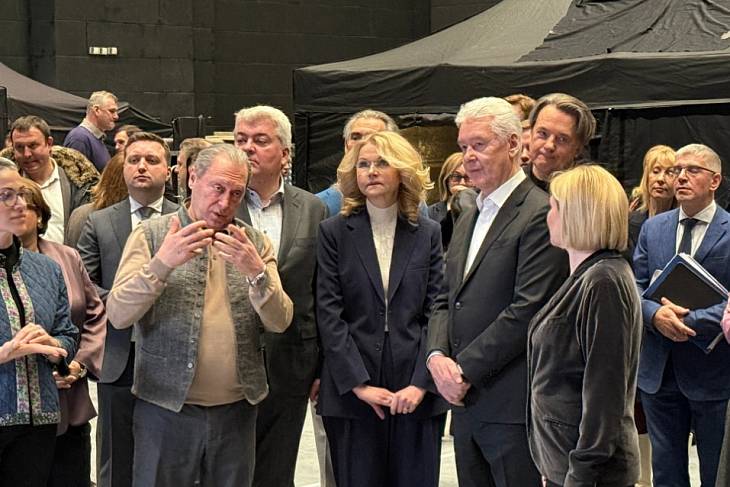 Зампред Правительства РФ Татьяна Голикова, Мэр Москвы Сергей Собянин и Министр культуры Ольга Любимова открыли новые съемочные павильоны на Киностудии Горького. Они находятся по адресу: Валдайский проезд, дом 16.