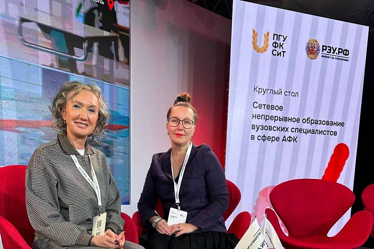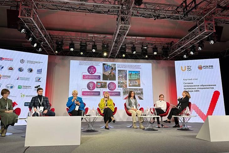 Делегация преподавателей во главе с завкафедрой Ларисой Парфеновой приняла участие в Круглом столе на тему «Сетевое непрерывное образование вузовских специалистов в сфере АФК», который прошел 29 ноября 2025 года в здании Нового манежа в Москве.
