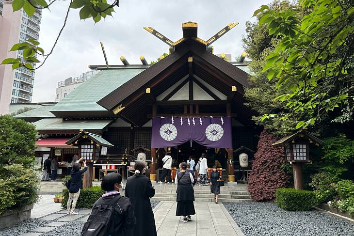 На склонах храма, окруженного небольшим холмом в форме ступы, высажено около 20 тыс. азалий 20 сортов